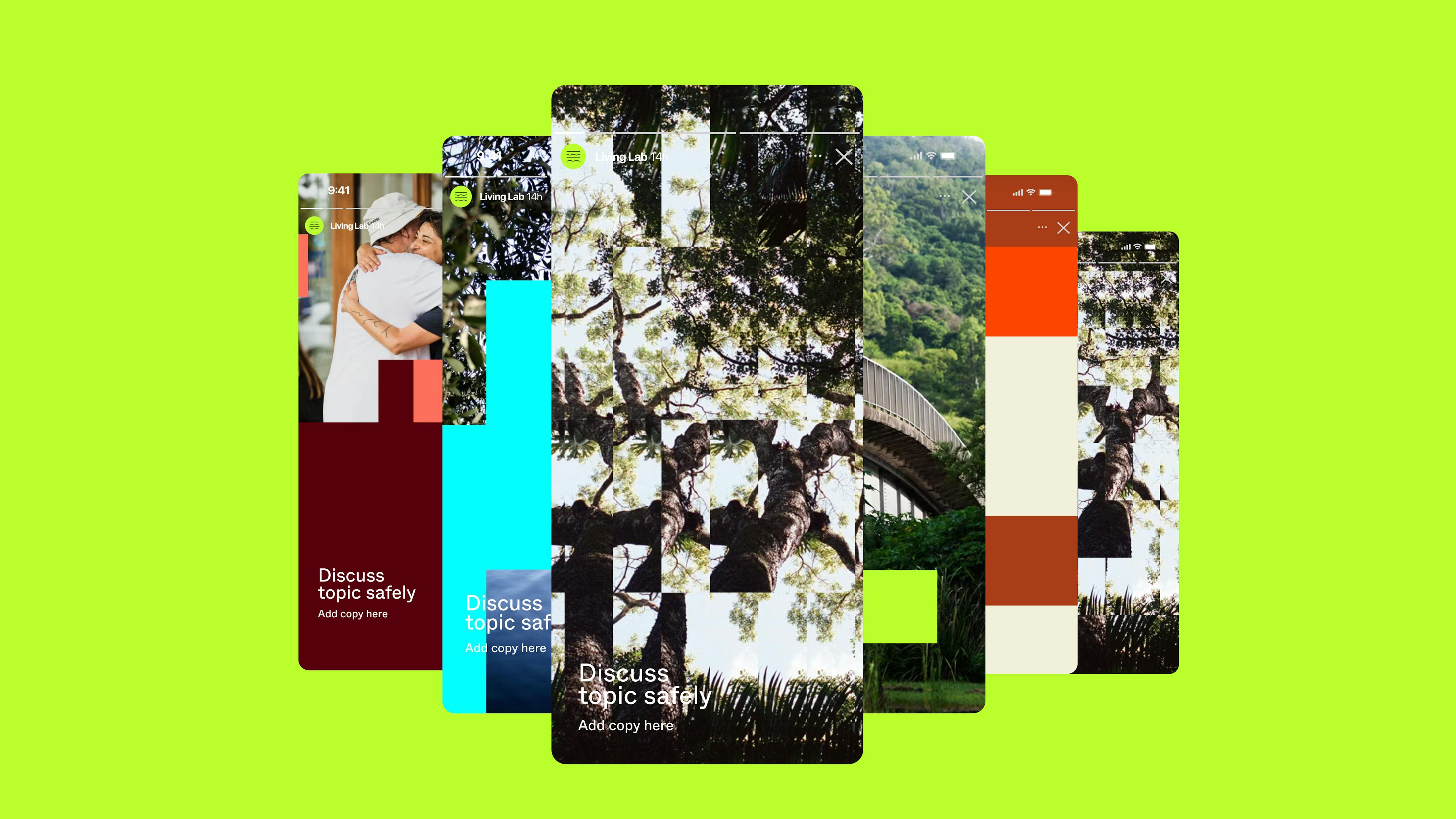 It allows the LLNR team to upload any image and generate visual assets by adjusting a defined set of brand variables, like colour overlays, grid shifts, text blocks, and layout styles. The result is a series of instantly usable, consistent visuals that can be exported for banners, cards, presentations, and social posts.